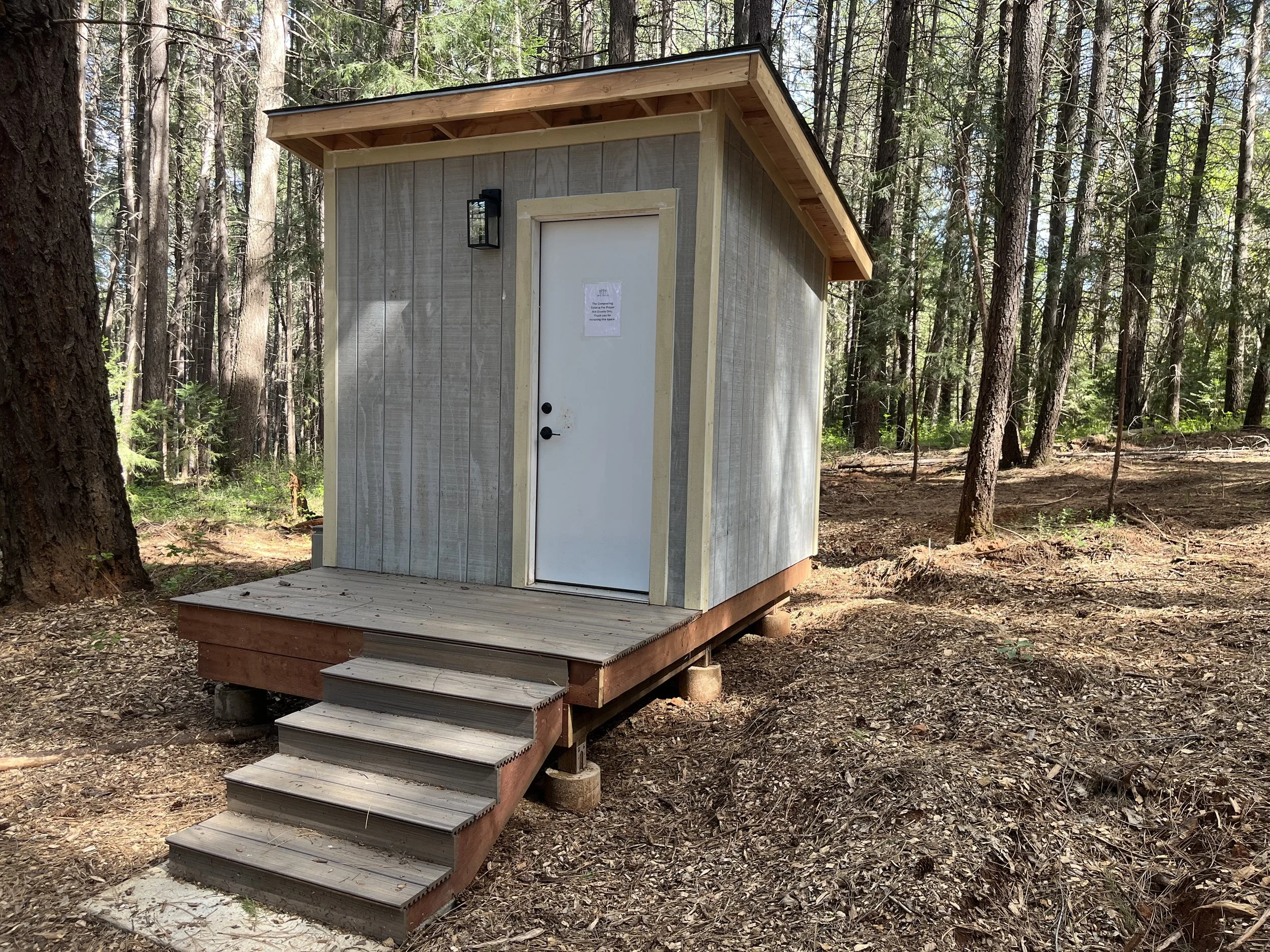 There is a composting toilet located across from the Prayer Huts. Instructions for use are inside the building.